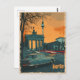 "Transport yourself to the enchanting streets of 1950s Berlin with our Vintage Sunset Postcard. This meticulously crafted design captures the timeless allure of the city at dusk, blending warm hues and nostalgic charm. The silhouette of iconic landmarks against the setting sun paints a picturesque scene, inviting you to relive the elegance and grace of post-war Berlin. Whether you send it to a friend or frame it as a cherished keepsake, this postcard is a window to a bygone era, where history meets art in a beautiful Berlin sunset."