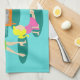 This 1950's Classic Television Kitchen Towel features a perfect 1950's family in its natural habitat. They are in their turquoise and teal living room. The father is lounging in his red egg chair, while reading the newspaper. The daughter is sprawled out on the floor in a lovely, pink frock. Her blonde hair is in a ponytail and she is kicked back watching a black and white television show on the bright orange, tube TV set. To the left, the mother is wafting into the room in a flouncy green dress and a white apron with red detailing. Not a hair on her blonde head is out of place. She is carrying a pink, three-layer cake with chocolate frosting. You won't believe the details in this design. The bright, red door in the distance, the retro artwork on the wall, the real newsprint on Dad's newspaper and the black and white housewife vacuuming her 1950's living room on the television set make this absolutely irresistible! Oh, my stars! They are a 1950's classic television family watching a 1950's classic television show. Is there no end to this brilliance?