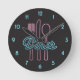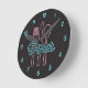 1950s Neon Diner Pink, Blue silverware Round Clock