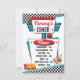 Go all out and create these cute customized diner menu cards! These feature red, blue, white and black with checked pattern and a hamburger, soda and fries on one side and a root beer float and sundae on the other. These are double sided flat menu cards.