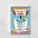 Go all out and create these cute customized diner menu cards! These feature red, teal, yellow and black with checked pattern and a hamburger, soda and fries on one side and a root beer float and sundae on the other. These are double sided flat menu cards.