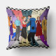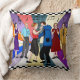 Retro graphics with retro fifties pop art style couple dancing at a sock hop black and white checkered pillow.