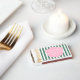Classic Cabana stripes and mid-century modern styling give these party favors 1950s vibes. This now classic design is shown here for a Bachelorette Weekend Party but all of the text can be customized to your event needs.