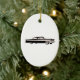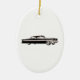 A ceramic Christmas ornament featuring an illustration of a long black 1956 Packard Clipper.