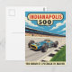 • This vintage postcard captures the thrill of the Indianapolis 500. The digital illustration features a classic 1960s design, perfect for a motorsports enthusiast.