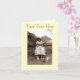 This retro sepia photograph on this customizable note card of two little girl twins from 1959 really stands out. The cute five year old identical twins are wearing their favorite rose print dresses that their mum made for them. They’re standing in the back garden of their council house with their big sister, she has her arms affectionately wrapped around the twins shoulders and she’s wearing a dress that shows the 1950`s fashion for fully flared dresses worn with full layered net under petticoat to give extra fullness. The families ginger cat has just wondered into the picture, the ginger tom cat was named Rusty. This old black and white photo shows a happy family scene from the 1950s era and makes a unique retro note card. This customizable retro note card can be personalised, on the front and inside, with your own text.