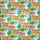 Flowers done in the bold colors and simple designs of 1960's graphic art.