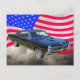 Classic black 1967 Pontiac GTO muscle car photo with American Flag background.