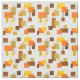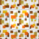 This fabric has a mid-century modern design of rectangles and lines in 1970s colors.