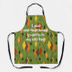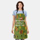 This apron has a mid-century modern 1970s design of diamonds, and starbursts on a field of green. Keep the text, change it, or delete it completely.