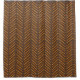 This shower curtain has a 1970s chevron design in retro orange and gold on a field of brown.