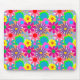 This mouse pad has a 1970s design of flowers in various colors.
