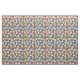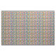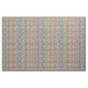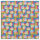 This fabric has a design of squares made of rectangles in bright 1970s colors with peace signs scatter around it.