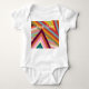 This baby bodysuit has a 1970s retro design is made from layered upside-down Vs layered in three places all in retro colors.