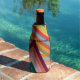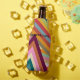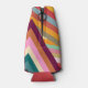 This bottle cooler has a 1970s retro design is made from layered upside-down Vs layered in three places all in retro colors.