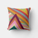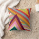 This throw pillow has a 1970s retro design is made from layered upside-down Vs layered in three places all in retro colors.