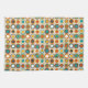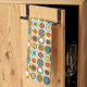 This funky 1970sretro style patterned kitchen towel features circles of brown, teal blue, white, and two shades of orange.This is sure to be an eye catcher hanging on your oven door!