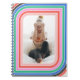 This retro-inspired spiral notebook features a colorful striped border framing a customizable photo. This puzzle was inspired by '70s vintage striped ski sweaters and includes bright red, black, blue, green, and pink rounded stripes.