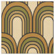 Vintage pattern design featuring 1970s color scheme in brown, yellow, green and beige. Repeating arches pattern fabric.