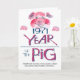 1971 "Year of the Pig" Chinese zodiac birthday card lists famous "Pigs" like Carl Jung and Henry Ford, along with personality traits. Inside text can be customized or removed.