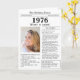 Say happy birthday to someone born in 1976 with this unique Newspaper style birthday card, including a photo of the recipient and a collection of fun facts and world news from the year of their birth. Get creative and create a personalized keepsake. Designed to resemble a vintage newspaper in classic black and white style. A cute and fun way to celebrate the 1970s!