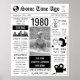 The template includes 1980s details and statistics. Make it your own by adding the honoree's personal information where required and photo (the photo will change automatically to black and white). To access advanced editing tools, please go to “Personalize”, scroll down and press the "click to customize further" link. For more matching designs click the link “Other products from this collection”.
