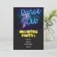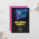 A fully customisable birthday party invitation for a retro themed neon 80s dance party featuring a cool 80s girl dancing at an 80s dance club against a black customisable background. The text can be customised to suit you needs. Get your retro on !