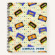 Trendy retro 90s and 80s Audio Mix Tapes Cassettes blue, orange, black and white pattern personalized spiral notebook. This notebook can be easily edited with your name.