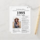 Say happy birthday with this unique Newspaper style Postcard, including a photo of the recipient and a collection of fun facts and world news from the year of their birth, 1993. Get creative and create a personalized keepsake. Designed to resemble a vintage newspaper, it features personalized headlines, text and the photo of your choice.