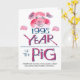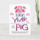 1995 "Year of the Pig" Chinese zodiac birthday card lists famous "Pigs" like Carl Jung and Henry Ford, along with personality traits. Inside text can be customized or removed.