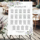 This beautiful 19 table wedding seating chart has room for 190 guests with 10 seats per table. The rustic hand painted watercolor design features eucalyptus leaves, lavender flowers, greenery and garden foliage in shades of sage green and light purple, with a marbled pale steel blue background and an elegant script calligraphy title. There is space for the names of the couple and wedding date below. Wonderful way to add elegance and style while making it easy for your guests to find their seats.