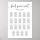 Elegant and Modern Calligraphy Wedding Seating Plan Find Your Seat. Personalized Simple Minimalist Seating Chart for 190 guests (19 tables). Just click the customize further link, shown under the text personalization area on the right, and choose your custom color background. This sign poster template makes it fast and easy to create stunning additions to your wedding decor. Signs can be enlarged, there are many sizes to choose from, as well as options for custom framing and matting.