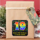 This fun, colorful, and vibrant birthday-themed sticker design features a large number "19" having a rainbow spectrum gradient inspired pattern. It also features the message "Happy 19th Birthday,", and a personalized name. Part of the background has a pattern of various music notes and symbols having a variety of colors and sizes. Birthday-themed stickers like this might be fun to use as a birthday celebration decoration, or perhaps give as a birthday gift, or perhaps be used when wrapping birthday presents being given in celebration of a song composer’s, a musician’s, a singer’s, or somebody else’s 19th birthday. [~Z0000423]
