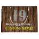 This western look and country look birthday-themed gift bag design features a large rustic inspired number "19", the message "Happy 19th Birthday,", a custom name, and a faux/imitation wood grain inspired style pattern background. A customized birthday gift bag like this might be a fun way to wrap a present being given to celebrate somebody’s nineteenth birthday. [~Z0000470]