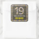 19th Birthday: Floral Number, Faux Wood Look, Name Square Sticker