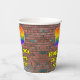 This fun and exciting urban graffiti and street art inspired birthday paper cup design features a large number “19” having a colorful rainbow spectrum gradient inspired pattern. It also features the message “Happy 19th Birthday,”, and an editable name. The background features a brick wall pattern. Colorful, vibrant paper cups like this might be fun to use at a birthday party being held to celebrate somebody’s nineteenth birthday. [~Z0000543]