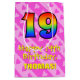19th Birthday: Fun Pink Hearts Stripes; Rainbow 19 Medium Gift Bag