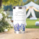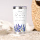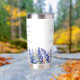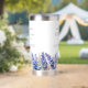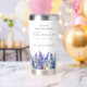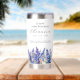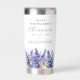 Perfect birthday gift for a July birthday. Blue larkspur is the birth flower for that month. It forms a pretty watercolor bottom border on this floral personalized insulated tumbler. The birthday guest of honor's name, age and birthdate are placed above it using elegant calligraphy and typography. All text is editable.