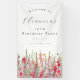 Elegant summer watercolor pink gladiolus flowers create a beautiful floral border at the bottom of this birthday party welcome sign. Gladiolus flowers are the July birth flower. A trendy font combination gives it a modern aesthetic. All of the text is editable.