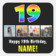 19th Birthday: Rainbow “19”; Custom Photos & Name Square Sticker