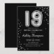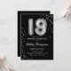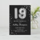 19th Birthday - Silver Balloons Black Invitation