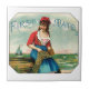 A rare 19th century American cigar label for First Mate Cigars. The label depicting a woman enjoying a cigar as she repairs a fishing net.