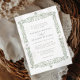 Plain white envelopes are included with paper invitations and will come to fit the invitation size you select. If you don’t need the envelopes, you may choose to not receive them by selecting the dropdown below "Envelopes" and choosing "None." If you’d like to have a design on your envelopes, you can browse all of these available envelopes to find the design that complements your 19th Century Antique Ornate Border Sage Green Invitation.