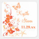 This 1.5" square shaped nautical beach theme inspired wedding favour sticker and/or envelope seal has bright orange hibiscus type tropical flowers and decorative scrolls on it, along with sand beige butterflies, starfish, a scalloped shell and a seahorse on it that matches the wedding invitation shown below. It would be perfect for a destination wedding, a beach wedding, or for anyone getting married in the tropics. Use it to seal your invitations with or attach to your wedding favors or place at your candy buffet table. You can also change the shape and size. ****BE CAREFUL if you do change the shape of the sticker yourself, as some of the design and text may get cut off. To avoid a mis-print, please email me to request another shape. If you need any other matching items, or assistance customizing this sticker, please email niteowlstudio@gmail.com.