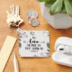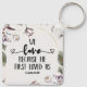 Inspirational quote scripture keychain depicts a simple floral design with white and lilac flowers and leaves. It features Bible Verse 1 John 4:19, "We love because He first loved us."