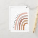 Boho rainbow in earthy colors like pale pink and tan. It features the phrase "When we pray, He hears us," a paraphrase of 1 John 5:15 - This Bible verse is perfect for helping to grow faith and the habit of prayer. It makes a great gift for any Christian woman, girl or boy.