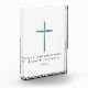 Introducing a minimalist blue cross with a distressed finish. Its soothing color brings peace and simplicity, symbolizes tranquility and encourages reflection. Below the cross, the words from 1 Peter 5:7 remind us to "Cast all your anxiety on Him because He cares for you."