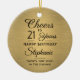 Cheers and Happy Birthday! Celebrate a joyful milestone birthday with a custom photo black and gold round ceramic ornament. All wording on this template (including "Cheers to 21 Years") is set up for a 21st birthday, but is simple to personalize for any year or event type. Design features a gold faux brushed metallic background, stylish vintage art deco style typography, elegant script calligraphy, and one picture of your choice. This unique & modern keepsake adds an elegant touch to Xmas home decorations. Please note that gold is printed color, not metallic foil. Example photo is by Averie Woodard (source: @averieclaire on Unsplash).