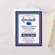 Share the joyful news of an upcoming graduation party with custom photo red, white and blue save the date postcard invitations. The picture and wording on this template are simple to personalize with graduate name, class year and other announcement details of your choice. The patriotic design features an elegant border, stylish modern calligraphy, classic vintage typography and one favorite photo, such as a senior picture or an image from the commencement ceremony. These stylish graduation cards are an elegant way to share a special day celebration with family and friends. Congratulations to the graduate!
