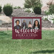 It's a double graduation party! Add a personalized touch to a joint graduation celebration honoring two graduates with a 3 photo collage welcome yard sign. The pictures and wording are simple to customize and colors are easy to change with the Zazzle design tool. The template includes class year, school name, and customizable messages that read "welcome to a graduation party" and "thank you for celebrating with us." (IMAGE PLACEMENT TIP: An easy way to position a photo exactly how you want is to crop it before uploading to the Zazzle website.) The modern maroon red and white design features handwritten style script calligraphy, elegant classic typography, and three photos of your choice, such as senior pictures or images from the commencement ceremony. This outdoor welcome sign is a stylish way to announce a special day celebration for any 2 grads, such as siblings, best friends, cousins, twins, brother and sister, etc. Congratulations to both of the graduates!